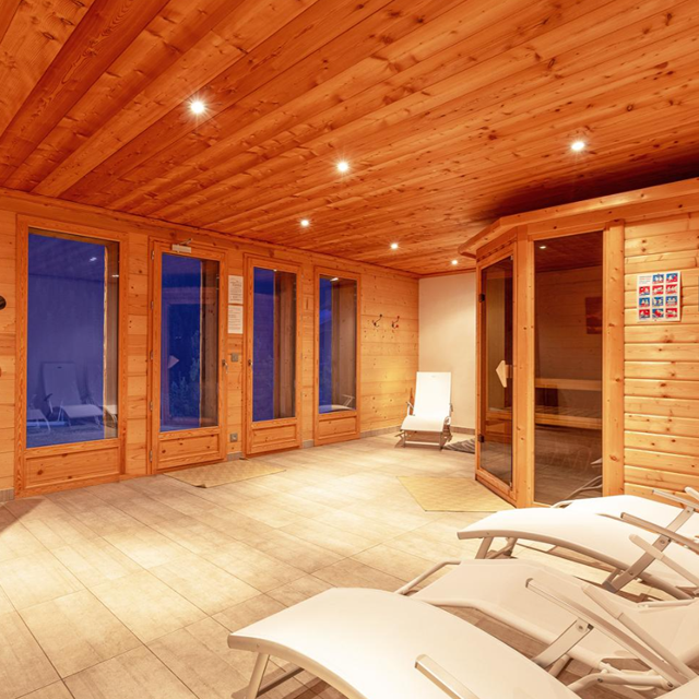 Na een actieve dag in de sneeuw kun je heerlijk tot rust komen in de sauna, terwijl de rest van het gezelschap nageniet met een warme chocolademelk of een goed glas wijn. Buiten wacht de jacuzzi, bubbelend onder de sterrenhemel, met uitzicht op de witte bergtoppen.