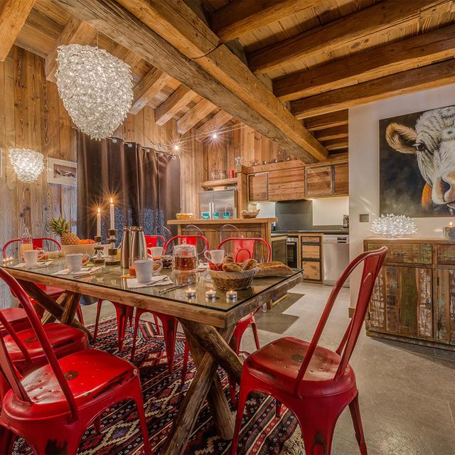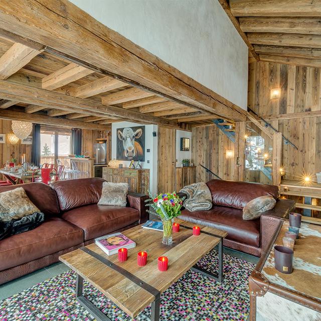 Het chalet heeft een warme uitstraling doordat er veelal gebruik is gemaakt van hout. Je voelt je hier gelijk thuis! Kruip gezellig voor de grote open haard na een intensieve dag skiën en warm even op of drink gezellig een drankje met elkaar in de ruime woonkamer met adembenemend uitzicht. Er zijn 4 slaapkamers met ieder een eigen badkamer. In de grote open keuken maak je de lekkerste gerechten klaar om vervolgens met de hele club uitgebreid te gaan eten aan de lange eettafel.