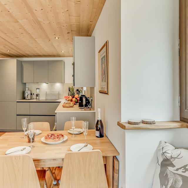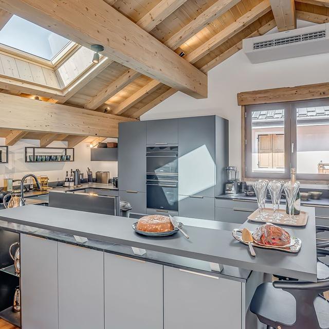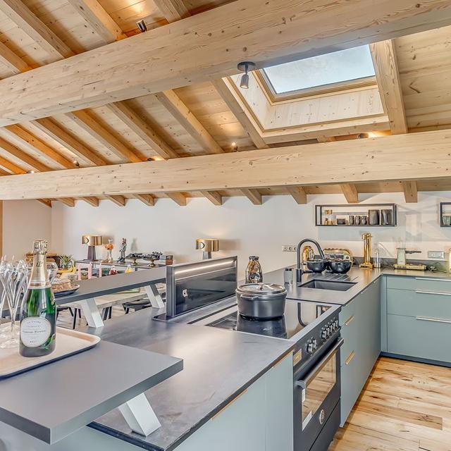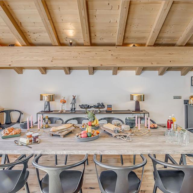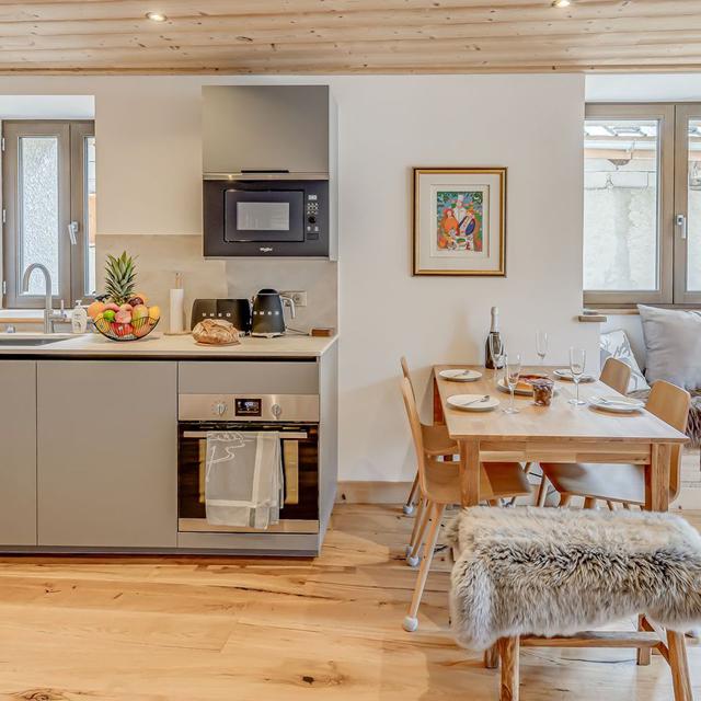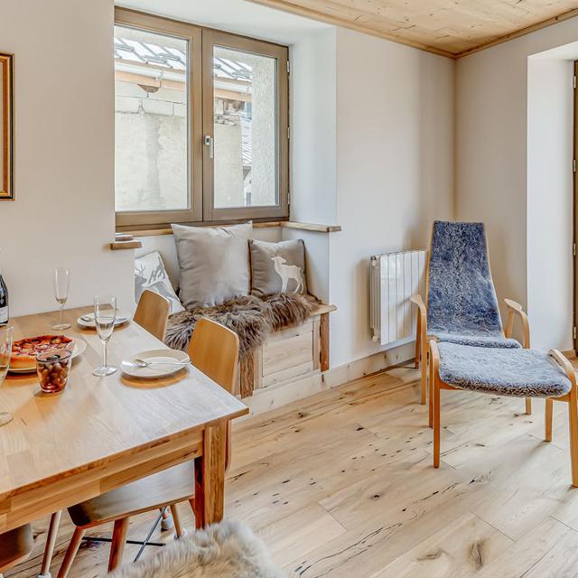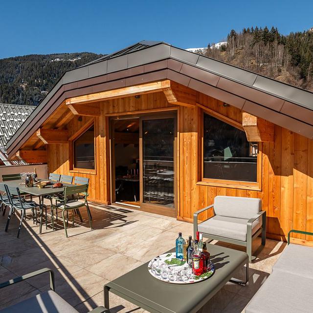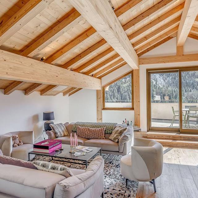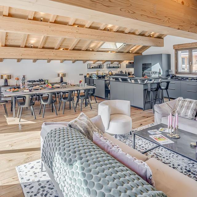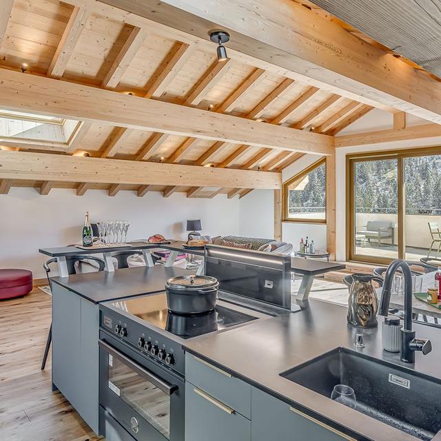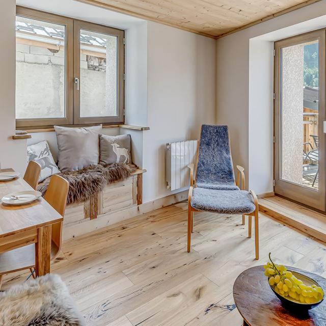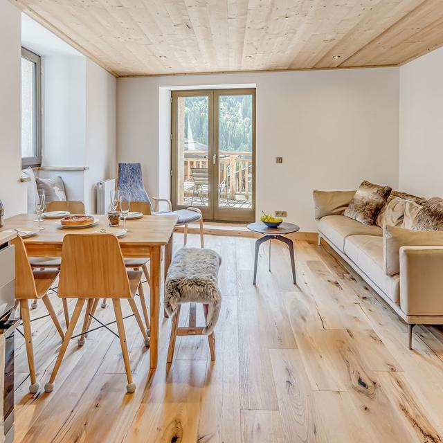 Binnen hangt een warme, authentieke sfeer met veel hout, sfeervolle accenten en fijne ruimtes om samen te komen. Geniet van een panoramisch uitzicht vanaf je balkon en kom na een dag op de ski’s tot rust in de privésauna. Een ideale plek voor wie houdt van comfort, privacy en de rust van de bergen.