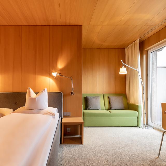 Het hotel voelt ruim en eigentijds aan, met veel hout, warme stoffen en een design dat comfort en rust uitstraalt. Van eenvoudige, verzorgde kamers tot luxe suites met een moderne alpine stijl: hier vind je altijd een kamer die bij je past. In de gezellige lounge bij de bar en de sfeervolle eetruimtes voel je je meteen welkom.