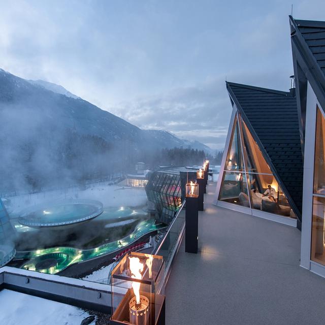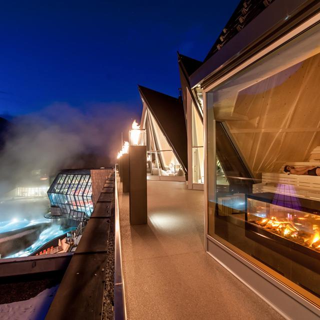 Vanuit het hotel heb je als gast direct toegang tot de thermische spa van het Aqua Dome. Hier vindt je naast spectaculaire binnen- en buitenzwembaden ook nog eens het enorme ‘Gletscherglühen’ sauna complex, waar je kunt genieten van verschillende type sauna’s en baden. In de stijlvolle Hochsitz Bar, met spectaculair uitzicht op de Alpen, kun je genieten van een vers gemixt drankje en/of een lekkere gezonde snack.
