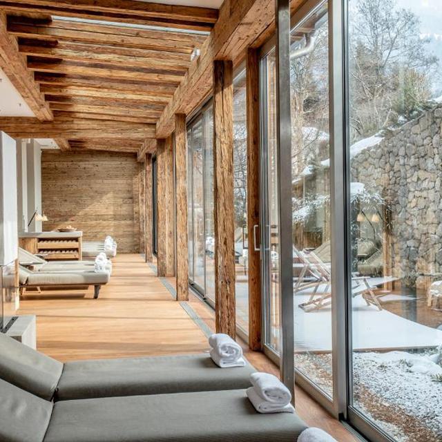 De kamers en suites zijn stijlvol ingericht, met veel hout, zachte kleuren en panoramische uitzichten op de omliggende bergen. Na een dag op de vers geprepareerde pistes komt u helemaal tot rust in de moderne wellness met sauna’s, stoombad en een verwarmd buitenbad. Ook de gezellige lounge, het verfijnde restaurant en de bar met open haard zorgen voor een ontspannen sfeer.