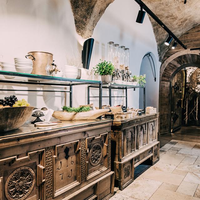 De kamers zijn ruim en elegant ingericht, met originele elementen zoals gewelfde plafonds en dikke muren. Ook geniet je van culinaire hoogstandjes in meerdere eetgelegenheden, waaronder een traditionele Oostenrijkse bierhal en een 500 jaar oude wijnkelder.