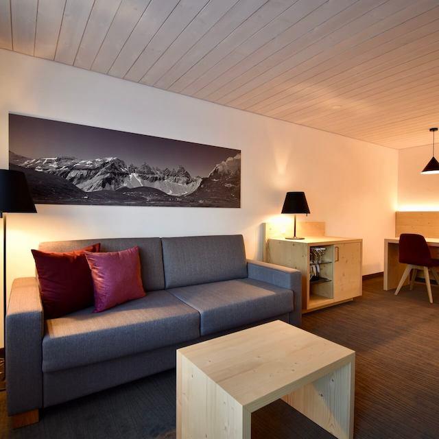 Hotel Laaxerhof is een luxe hotel in het mooie Laax. De lift bereik je ’s ochtends gemakkelijk met de skibus, die voor het hotel stopt. De inrichting is een mix van traditioneel met veel hout en modern.