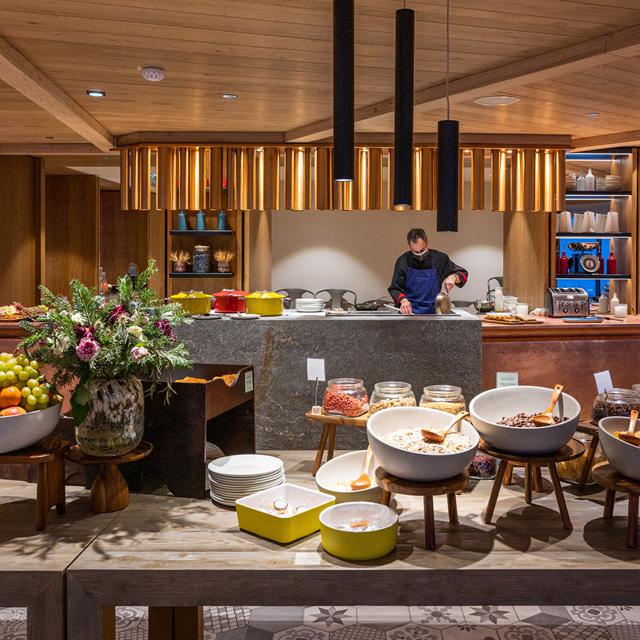Hier zit je ook goed als je even wilt terugtrekken en weer tot jezelf wilt komen. De grote spa van het hotel is namelijk de ultieme plek om te ontspannen. Je vindt er een whirlpool, sauna, hammam én zwembad en met als kerst op de taart heb je een prachtig uitzicht op de bergen en de gletsjer la Grande Motte.