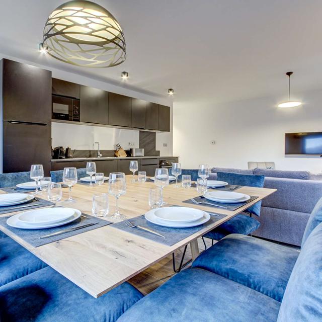Na een dag op de 511 kilometer aan pistes is het heerlijk thuiskomen in je eigen appartement. Geniet op het terras met tuin, kook je favoriete maaltijd in de volledig uitgeruste keuken of plof neer in de knusse woonkamer. Hier combineer je de vrijheid van een eigen plek met de gezelligheid van een bruisend bergdorp.