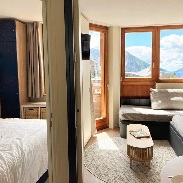 De appartementen en studio’s zijn praktisch ingericht, variërend van knusse tweepersoonsstudio’s tot comfortabele 2-kamerappartementen voor maximaal 6 personen. Denk aan houten accenten, zachte banken en een gezellige zithoek waar je na een actieve dag heerlijk kunt uitrusten. Sommige units bieden bovendien uitzicht op de besneeuwde daken van Avoriaz – een mooi extraatje bij je verblijf.