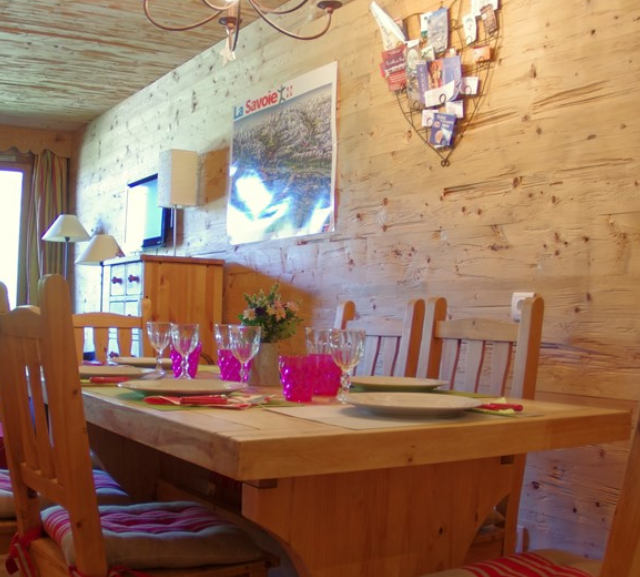 De inrichting van de appartementen sluit helemaal aan op de Savoyarde stijl. Elk appartement is helemaal afgewerkt met hout en de rood-witte gordijnen en kussen creëren een warme sfeer. Eigenlijk is elk appartement een klein, hout huisje. In de keuken maak je de lekkerste Franse gerechten klaar en op de bank in de woonkamer kom je na een lange dag op de ski’s heerlijk tot rust. Is koken niet echt jouw ding? Een kleine wandeling brengt je al naar het centrum van Valmorel waar je aanschuift voor een heerlijk Frans diner. Dat wordt genieten!