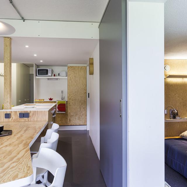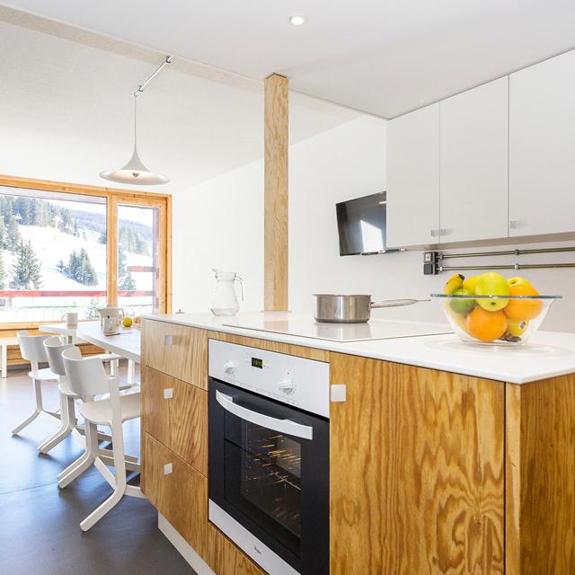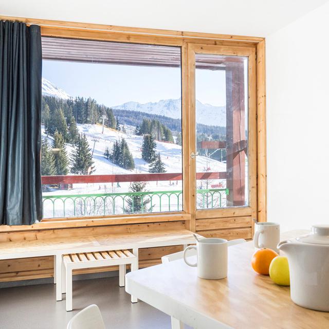 Dicht bij het centrum van Arc 1800 bevindt zich Résidence Lauzières. Deze résidence biedt ruimte aan eenvoudige, maar comfortabele studio’s met balkon. Daar is het ’s middags heerlijk bijkomen en genieten van de winterzon.