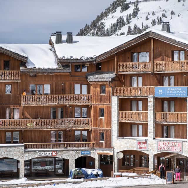 Résidence Les Balcons de Belle Plagne is een prachtig, in Savoyarde stijl gebouwd appartementencomplex gelegen in de wijk Belle Plagne. Vanuit de appartementen heb je een spectaculair uitzicht over de omgeving. Het complex is gelegen in een rustig gedeelte van Belle Plagne, maar wel direct aan de blauwe piste ‘Roche de Mio Centre Point – Centro Point’ en vlakbij de skilift ‘Arpette’. Zo ski je na een dag op de lange latten zo terug naar je appartement. Ook het mooie centrum van Belle Plagne is niet ver, dit vind je op slechts 250 meter van de résidence.