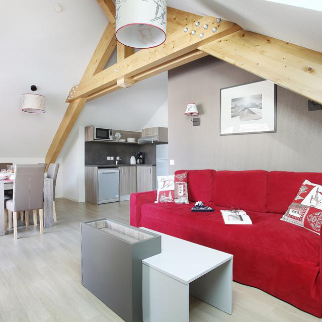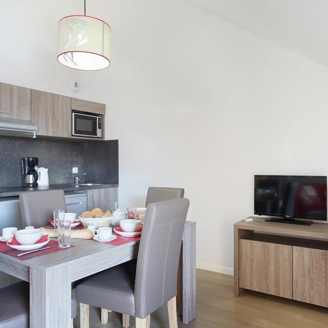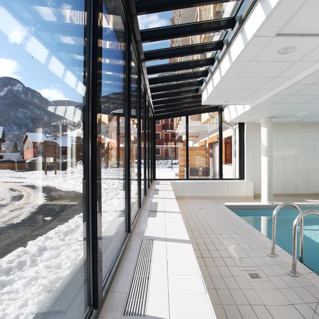 Aan de rand van Villeneuve ligt het elegante Résidence Aquisana. Met de gratis skibus sta je snel bij de skiliften en midden in het centrum. In Résidence Aquisana heb je de luxe dat je aan het eind van de dag tot aan de deur kunt terug skiën. Door het vele gebruik van hout en steen past het gebouw perfect in de omgeving. Ook in de appartementen is deze stijl doorgetrokken. Door de hoge kwaliteit van de inrichting is het hier optimaal genieten. Trek een baantje in het zwembad of boek tegen een bijdrage een fijne hamambehandeling, om weer fris de volgende dag in te gaan.