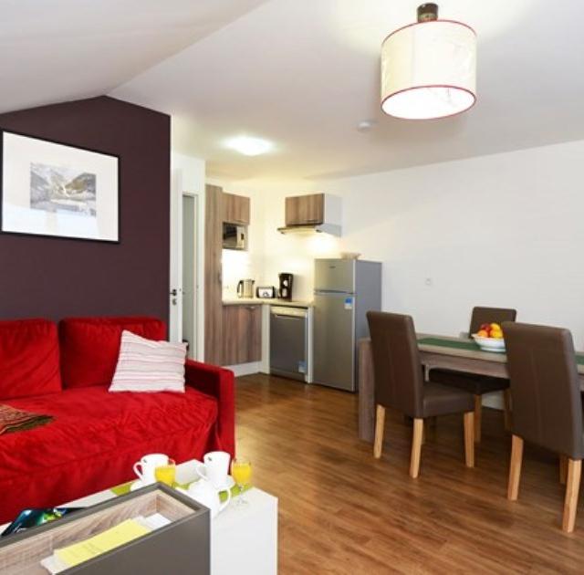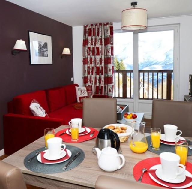 De appartementen zijn modern en netjes ingericht en beschikken allemaal over een balkon, waar het heerlijk toeven is na een dag uitsloven op de piste. Als je daarna wat ontspanning zoekt, kun je genieten van het verwarmde zwembad, sauna of hammam die de résidence rijk is.