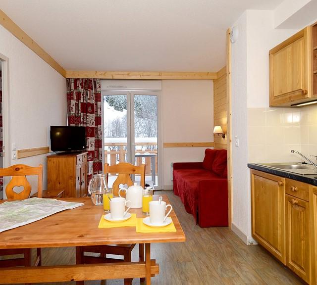 De appartementen zijn comfortabel en modern ingericht. Op korte afstand van de résidence vind je een bakker, een mini supermarkt en restaurants. Wil je het echte centrum van St. Sorlin gaan ontdekken? Dan kun je het beste de gratis skibus nemen, die brengt je hier binnen enkele minuten naar toe. Kom je na een dag op de piste ietwat verkleumd terug? Geen probleem, trek dan lekker een baantje in het verwarmde binnenzwembad en kom weer helemaal op temperatuur.