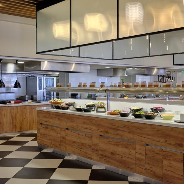 Tijd voor wat actie! Of je nu met het gezin, vrienden of partner reist, het waterpark met vijf glijbanen zorgt voor veel plezier voor iedereen. Terwijl de kinderen zich uitleven in het water, kun jij meedoen of relaxen bij het zwembad en genieten van een panoramisch uitzicht op de zee. Bestel in de bar een lekkere snack en je favoriete drankje. ’s Avonds kun je jezelf trakteren op een uitgebreid diner in één van de themabuffetten of ontdek van de verfijnde smaken in het à la carte restaurant met Griekse en Aziatische gerechten.