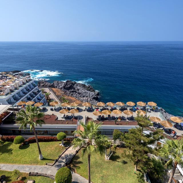 Het hotel ligt vlak bij het centrum van Puerto Santiago en is op de rotsen gebouwd die boven de zee uittorenen. Waar je ook kijkt, bijna overal heb je dat ongelofelijke uitzicht. Via de promenade achter het hotel is er een directe verbinding naar het strand.