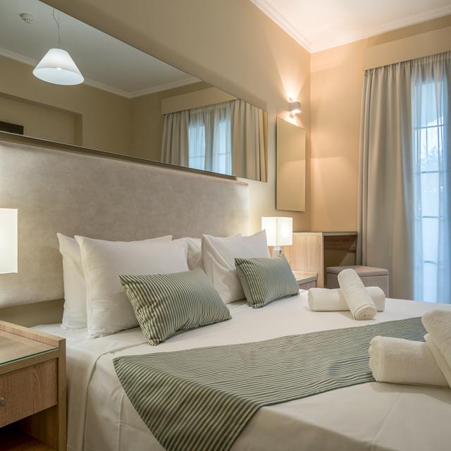 De kamers bieden veelal uitzicht over de mooie, groene tuinen en landschappen. En deze prachtige omgeving heeft nog een verassing in petto; het centrum van Kalamaki is erg gezellig en ligt ook nog eens op loopafstand van Hotel Golden Sun. Wanneer je liever niets wilt doen, kun je een plekje in de zon zoeken. En hiervan zijn er genoeg te vinden rondom het fijne zwembad. Lekker languit op je ligstoel en de kinderen die zich tegelijkertijd kunnen vermaken in het kinderzwembad. Dat is toch vakantie vieren!
