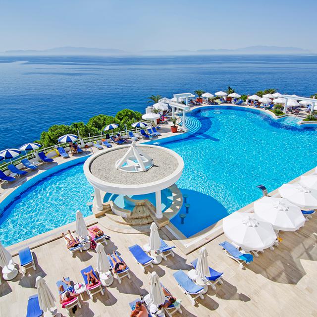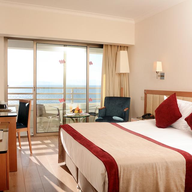 De kamers zijn allemaal verzorgd ingericht met lichte kleuren en houten accenten en hebben allemaal een fijn balkon. Vanaf het terras om het zwembad heen heb je een mooi uitzicht over zee. Ook in veel van de restaurants en bars is het uitzicht waanzinnig. Zo is er het Manzara restaurant waar de zonsondergang prachtig is en ligt de Sedir bar op de rots met een adembenemend uitzicht over Kusadasi.
