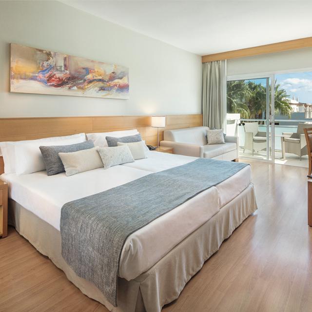De tuin is echt prachtig: het lijkt wel alsof je op een tropisch eiland bent aangekomen. Er zijn vier grote zwembaden die door middel van bruggetjes aan elkaar verbonden zijn. Deze bruggetjes leiden naar diverse faciliteiten, waaronder de poolbars. Twee kleinere badjes met splash pool zijn perfect voor de kleinste vakantiegangers. Net als de kleurrijke miniclub!