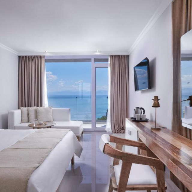 Op een unieke locatie op Corfu vind je het luxe Hotel Mythos Palace. Dit adults only hotel ligt aan een prachtige baai en vanaf het terras, het zwembad en het restaurant heb je een adembenemend uitzicht op zee. Geniet van de zwembaden, rol je handdoek uit op je ligbedje op het strand of relax in de sauna of het binnenzwembad. Daarnaast er 5 dagen per week entertainment, waaronder livemuziek en shows.