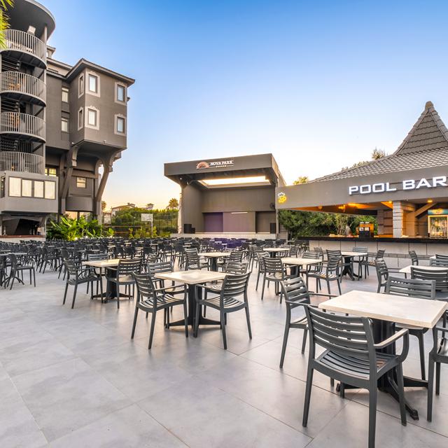 Hotel Nova Park is een gezellig hotel dat op steenworp afstand van het strand ligt. Je geniet hier van de vele faciliteiten die het hotel je te bieden heeft. Doe mee aan het animatieprogramma en ontspan in de hamam van het hotel. Er zijn winkeltjes in de omgeving van het hotel te vinden. Het centrum van Side bereik je gemakkelijk met de dolmus. Het hotel biedt een uitstekende all inclusive formule. Wij raden je aan eens een reservering in één van de sfeervolle à-la-carte restaurants te maken.