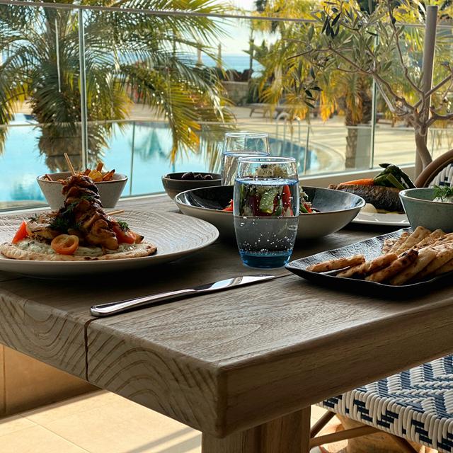 Hoewel het hotel vele fijne faciliteiten heeft, zoals een fitnesscenter, een privéstrand en meerdere tennisbanen, is de grootste uitblinker het prachtige zwembad. Het biedt een betoverend uitzicht op zee, een kinderzwembad en een heuse loungebar, waar je lekkere cocktails kunt bestellen.