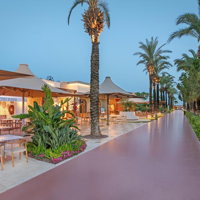 Hotel Titanic Deluxe Lara is een populair hotel aan de Turkse kust! Dit schitterende hotel is in de vorm van een schip gebouwd en ligt pal aan het goudgele zandstrand van Lara. Bij het strand ligt een privé pier met heerlijke cabanas om ultiem van je vakantie te genieten. Het centrum van Antalya is dichtbij en snel en gemakkelijk te bereiken met een stadsbus die dicht bij het hotel stopt.
