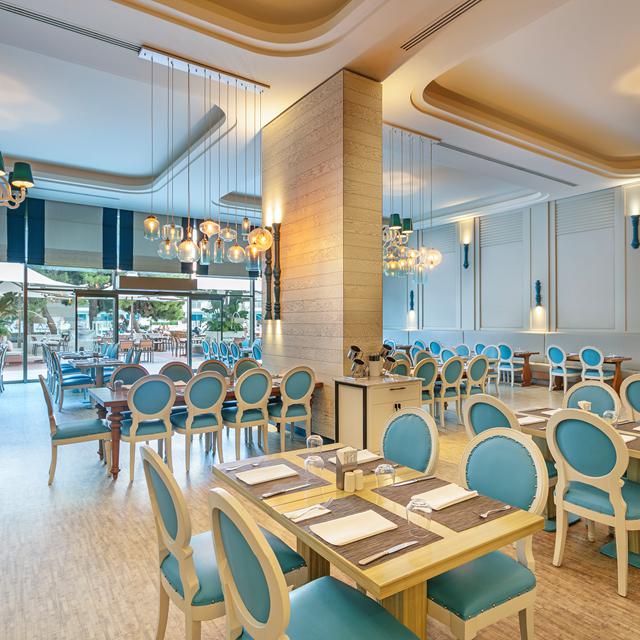 In buffetrestaurant Parkfora staat dagelijks een uitgebreid buffet klaar en worden sommige gerechten vers voor je neus bereid. Er vinden ook thema avonden plaats, zodat je tijdens de Turkse avond bijvoorbeeld de lekkerste Turkse gerechten kunt proberen. Als het Turkse eten bevalt is een reservering in à-la-carterestaurant Hasir aan te raden. In warme sferen van de Italiaanse keuken genieten kan in restaurant Sapore en een diner in het chique visrestaurant Capari doet denken aan een diner op een luxe cruiseschip- en dat past precies bij het thema van dit schitterende hotel.