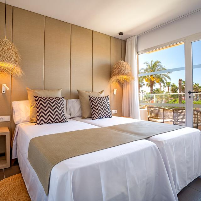 De suites van Migjorn Ibiza Suites & Spa zijn modern en minimalistisch ingericht in mediterrane stijl, waar de zachte kleur van Ibiza en de organische decoratie de hoofdrolspelers zijn in het Ibizaanse kubusvormige ontwerp. Voor de mooie zwembaden en zonneterrassen is gekozen voor dezelfde stijl. Geniet hier van een drankje van de poolbar en dommel af en toe even weg op een ligbedje. Nog niet genoeg tot rust gekomen? Breng dan een bezoek aan de spa. Deze biedt een watercircuit bestaande uit een sauna, drie sensatiedouches, een zwembad met verschillende waterspuiten, een koudwatervoetbad en een jacuzzi.