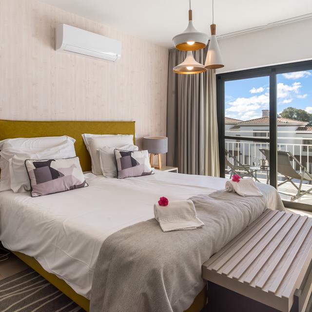 De gloednieuwe Appartementen Quinta do Algarvio Village is een heerlijke plek om volledig te ontspannen. De ruime opzet en groene omgeving zorgt voor een ultiem vakantiegevoel met een flinke dosis comfort. Rondom het zwembad kun je genieten van het heerlijke zonnetje op een van de uitnodigende ligbedjes, al kun je hiervoor ook terecht in je eigen tuin. De stijlvolle inrichting is modern en warm, waarbij aan ieder detail is gedacht. Of het nu gaat om de kleurrijke decoratie of designverlichting; hier klopt alles! Wil je wat van het veelzijdige Algarve ontdekken met een huurauto, dan zijn er in de omgeving prachtige stranden en sfeervolle plaatsjes te vinden.